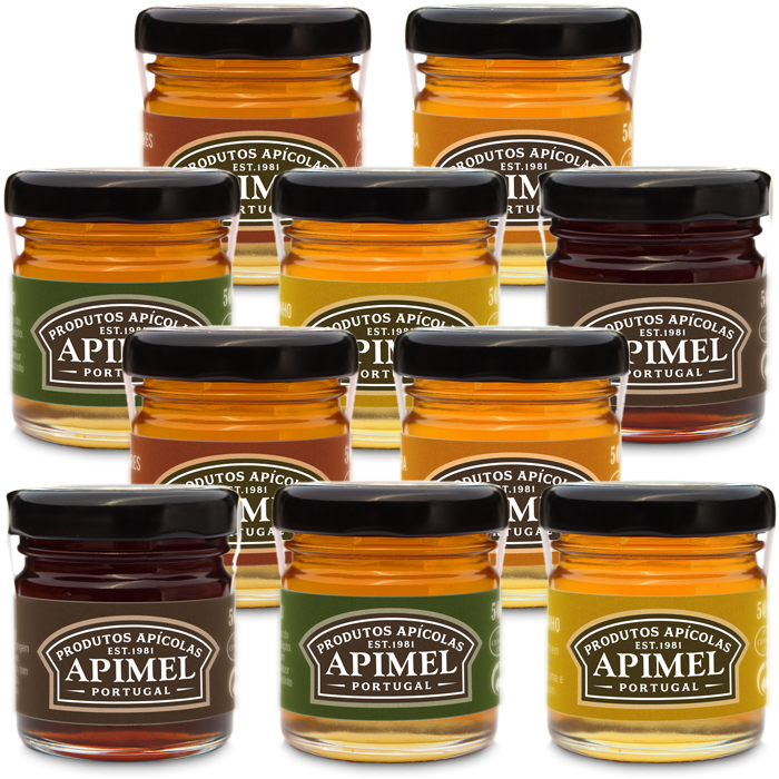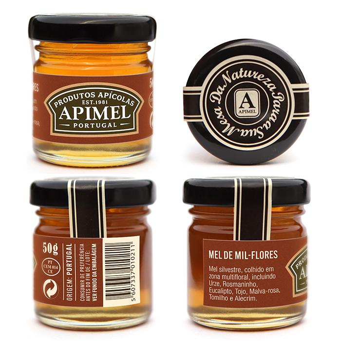 Mel Miniaturas - Caixa com 50 frascos de 50g 70,00 € Desconto de %. IVA incluído. Partilhar Seleccione o Tipo de Mel Mel de Urze Mel de Mil-Flores Mel de Rosmaninho Mel de Laranjeira Mel de Castanheiro Sortido de 5 variedades Comprar Contactar Frascos de 50g. Caixa com 50 Unidades. Ideal para eventos, hotelaria, restauração, cabazes, casamentos, etc... Mel de Urze, de Mil-Flores, de Rosmaninho, de Laranjeira, de Castanheiro ou sortido de 5 variedades. _____________ Origem:Portugal Embalado e Distribuído por:APIMEL, de Ventura & Castanheira, Lda.